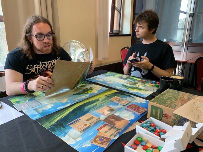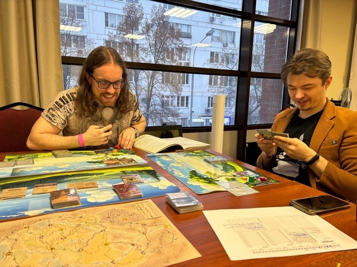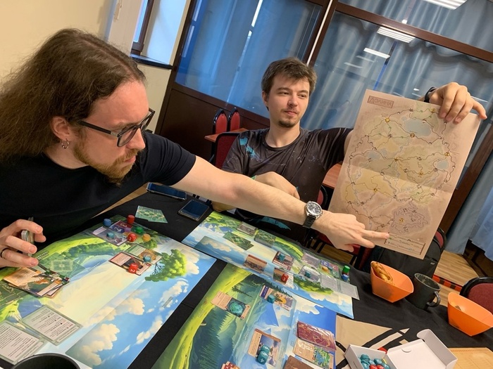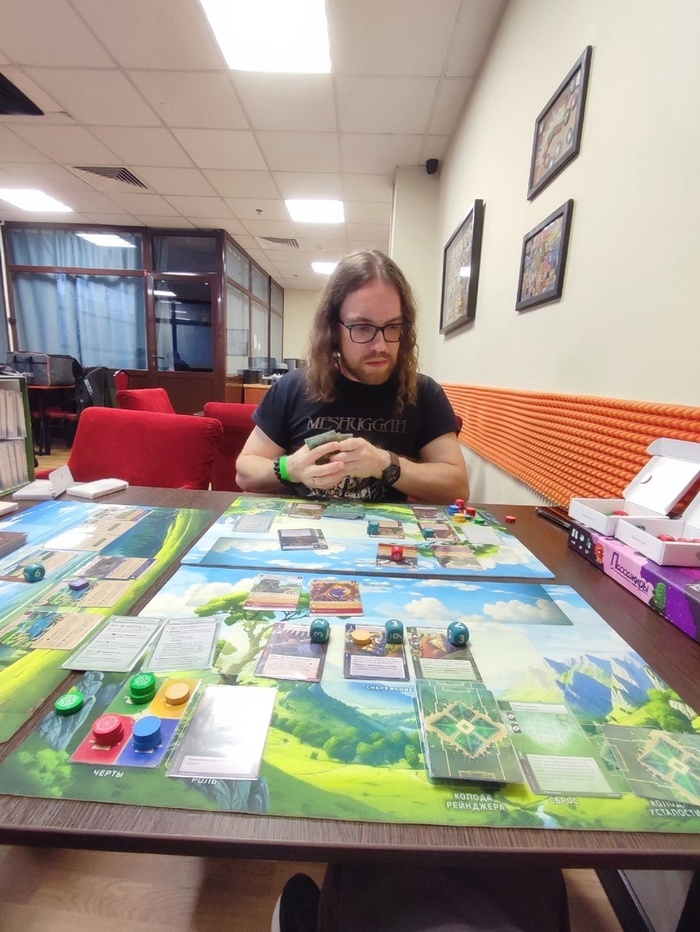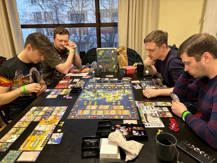 Во вторых, тандыр все-таки при всей навороченности механик, модулей, каких-то приколюх - это все-таки предельно простая игра, её достаточно легко объяснить в неё. Просто усадить людей, которые не шибко наиграли в разные современные настольные игры. И эта вот простая для освоения игра в итоге интересна и прожжённым гикам, и достаточно скрупулёзно относящимся к настольным играм индивидуумам.