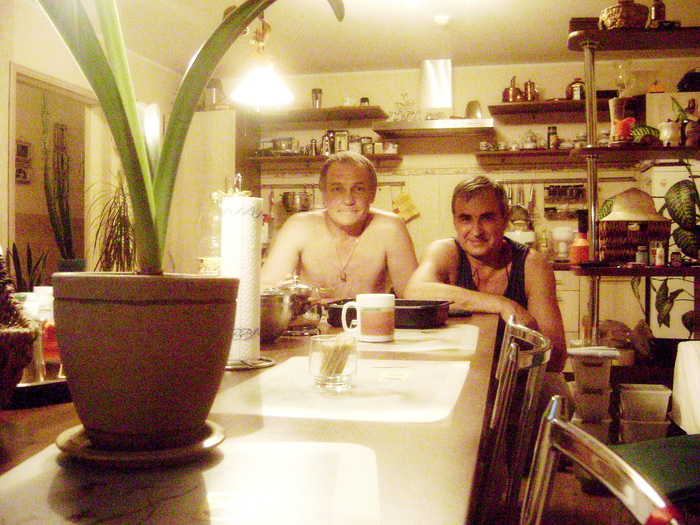 Подходит он к помойке, выкидывать мусор, а там тщедушный мужичок в рванье ковыряется. И так Сане стало неудобно, что в кризис он висками всякими балуется и балыком закусывает, в то время, когда люди на помойке еду ищут... Решил он дядьку накормить. О чем ему и сообщил. Дядя смущённо отнекивался, благодарил и пятился от нашего Саши. Но от Саши так просто не отделаться. Со словами "Хорош сиськи мять, бьют - беги, дают - бери" он потащил бомжа в магазин. Там, купив алкоголь, закупил и подарок бедному дядьке. Вареной колбасы, пива, хлеба, каких-то консервов - короче, продуктовый набор. С чувством исполненного долга наш товарищ расстался с мужичком, на прощание потрепав его по загривку, выдав что-то типа "Не дрейфь, прорвемся" пошёл к нам.