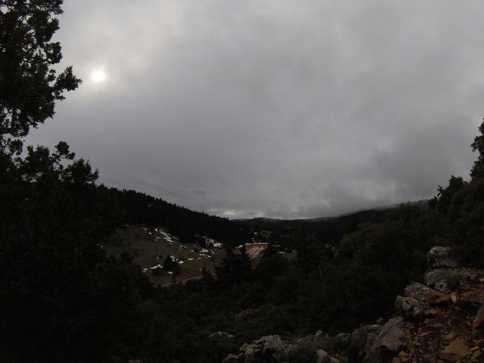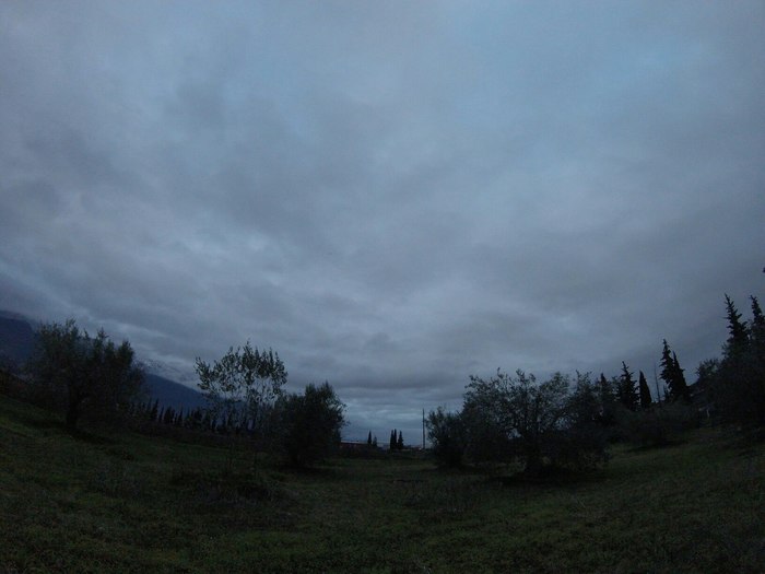 Ночь прошла на удивление спокойно, не было ветра или дождя, я не скатывался со склона и не сползал с пенки. Так как спать мне теперь приходится по 12 часов и даже чуть более (именно столько сейчас в Греции длится темный период суток), то ночью я часто просыпаюсь. В этот раз провел ночное время с пользой, написал предыдущий пост. В четыре утра меня разбудили монастырские колокола, очевидно, зазывая монахов на полунощницу и братский молебен. За колоколами запели петухи. Я уснул снова, но через пару часов колокола стали звонить опять, теперь, наверное, к литургии. Когда уже совсем рассвело, я нехотя выбрался из своего спальника (в нем настолько тепло, что совершенно не хочется покидать его утром). Светило солнце, было достаточно тепло, и я решил хотя бы немного подсушить тент, который снаружи за ночь совершенно высох, а вот изнутри был весьма влажный. Перевернув его мокрой стороной кверху, я занялся приготовлением чая.