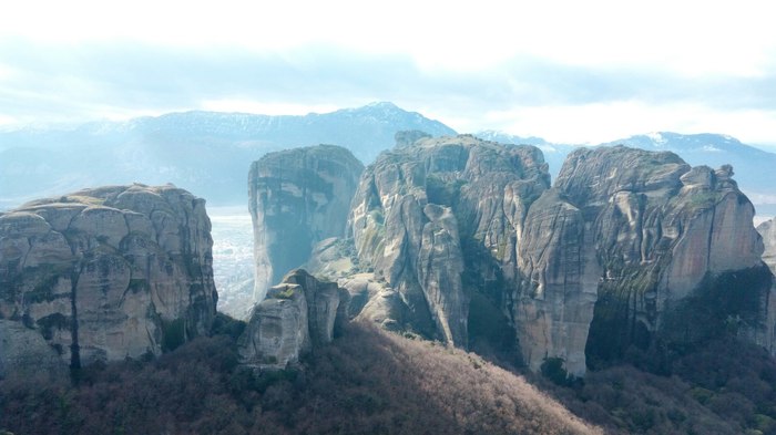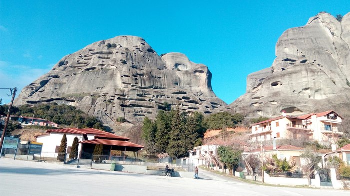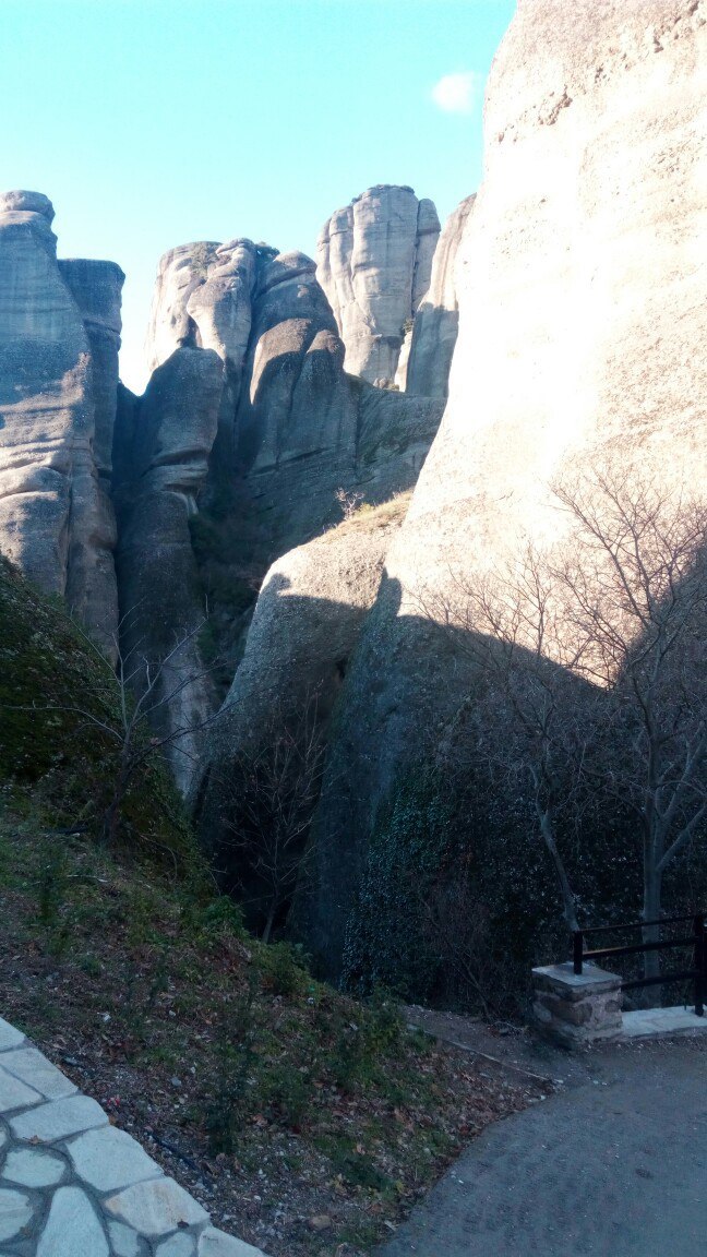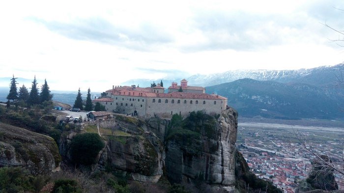 После монастыря святого Варлаама я направился дальше вверх по горе в монастырь Преображения Господня. Это самый крупный монастырь Горы, оттого его еще называют Великие Метеоры. Достигнув монастыря, я беспрепятственно попал на его территорию, но, поднявшись на саму скалу, обнаружил, что по средам он не работает. Я вернулся и отправился в другую часть горы, где располагались еще два монастыря. Залезть на скалу монастыря Святой Троицы стоило мне немалых трудов. Дойдя до самого верха, я обнаружил билетера, который сидел на стульчике и читал книжку, а рядом с ним огромный поднос с рахат-лукумом, накрытый прозрачной крышкой. Я купил билет и стал коситься на лукум, но билетер был увлечен книгой и не обращал на меня никакого внимания. Пришлось проявить настойчивость.