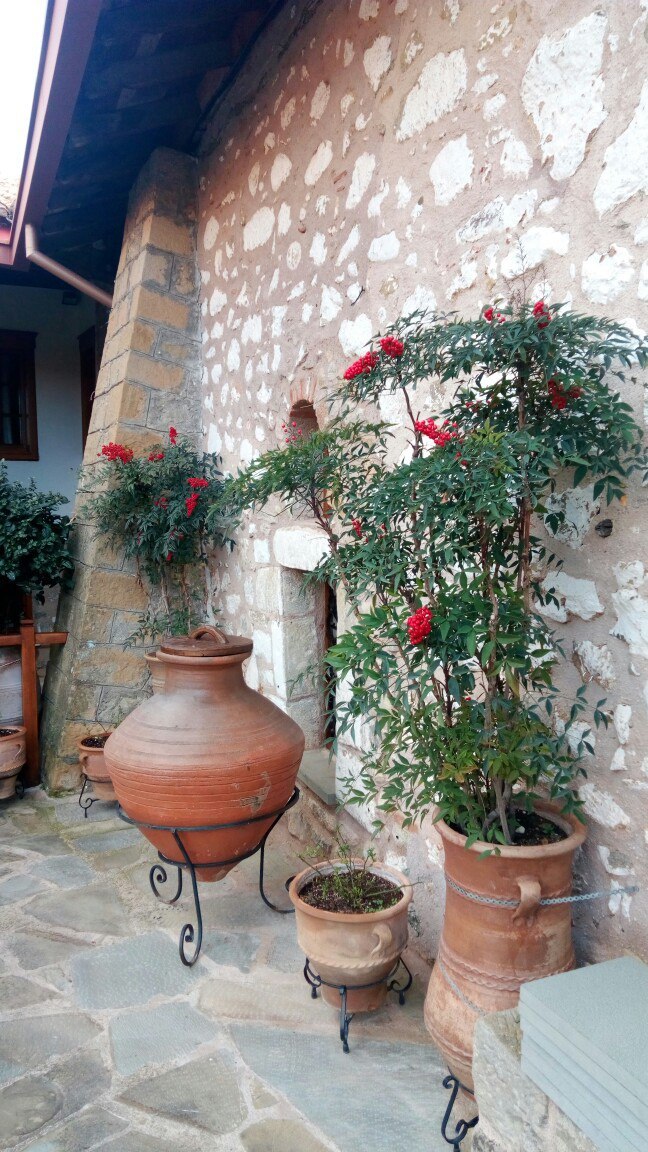 Я так и не понял, почему монастырь носит имя святого Стефана, так как весь монастырь проникнут духом поклонения священномученику Харламу. Именно он изображен на большинстве фресок и икон, о его мучении продают книги в монастырской лавке. Ни одной иконы Стефана я нигде так и не увидел, наверняка они были, но их представление было не настолько «агрессивным». При монастыре также имелся свой музей, не в пример беднее и глупее музея монастыря Варлаама. Он напоминал о коллекциях церковной утвари в историческом отделе советского краеведческого музея провинциального городка. А вот монастырский храм, наоборот отличался красотой и уютом. Его стены были покрыты совершенно новой росписью, настолько новой, что местами даже недописанной. Там присутствовала картина страшного суда, идентичная той, что я видел в монастыре Варлаама. На противоположной стороне, справа от входа в храм была изображена лестница Иакова, а справа, лестница, по которой монахи поднимаются ко Христу, некоторые монахи были срываемы с лестницы демонами и падали в пасть Зверю. Особенно поразил меня монах, который уже будучи почти сорван с лестницы, держался за нее одной рукой и пытался вернуться обратно. Пространство же между этими картинами было заполнено сценами мучения Харлама (может быть это все-таки был храм свщмч. Харлама?). Двор монастыря был красив и ухожен, здесь цвели цветы и плодоносили какие-то деревья. В монастыре мне удалось пополнить запасы воды, после чего я направился искать место для ночлега.