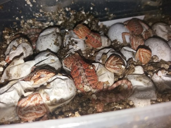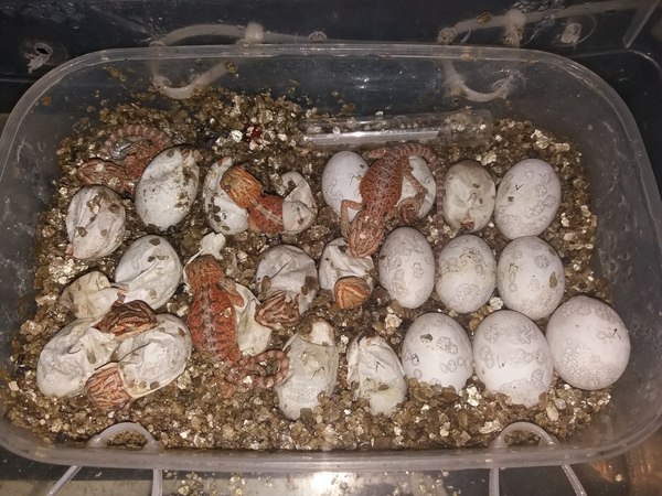 Так я стала свидетелем вылупления агам. Еще восемь яиц лежат отдыхают, завтра-послезавтра тоже выйдут. Йолки-полки, моё первое разведение агам!