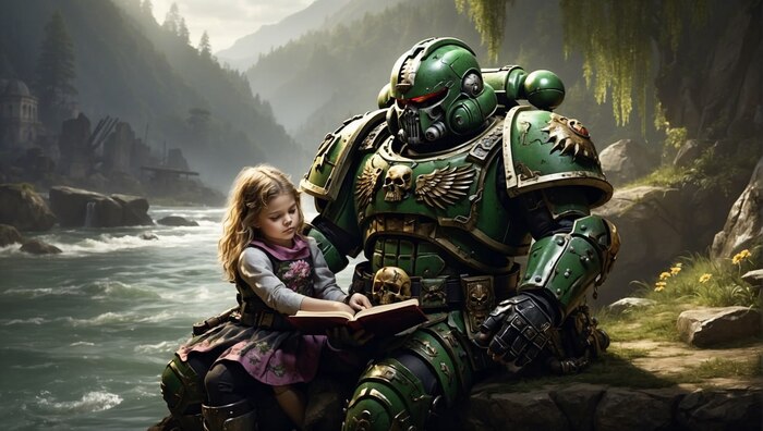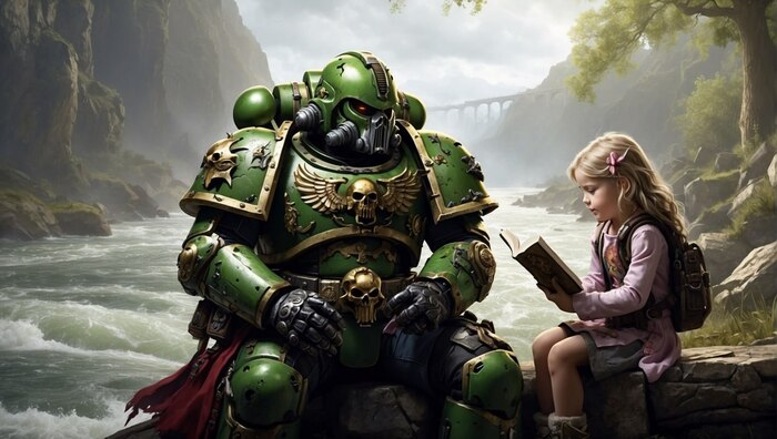 ЕМНИП, месяц назад, один пользователь искал картинку, как космодесантник Саламандр, читает книжку девочке, сидя на берегу реки.
