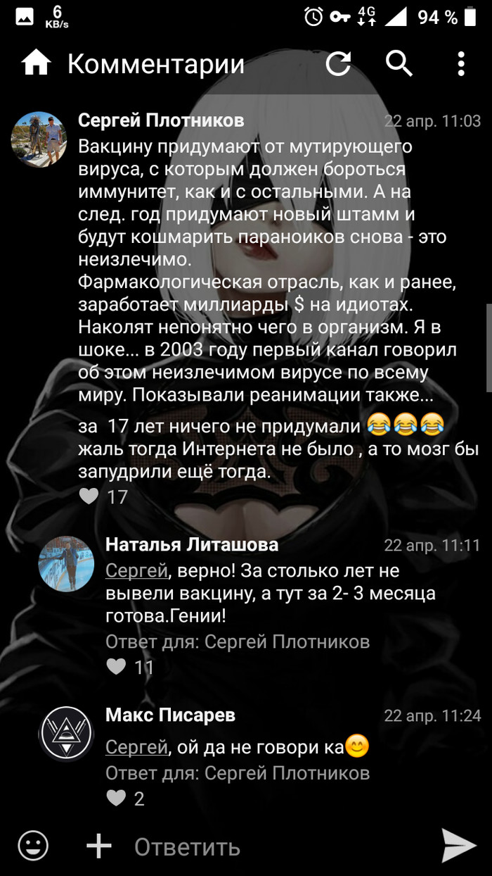 10 ColuberDog Вакцина 5 лет назад Показать полностью 4 Коронавирус Вакцина Антипрививочники Длиннопост Ещё 0