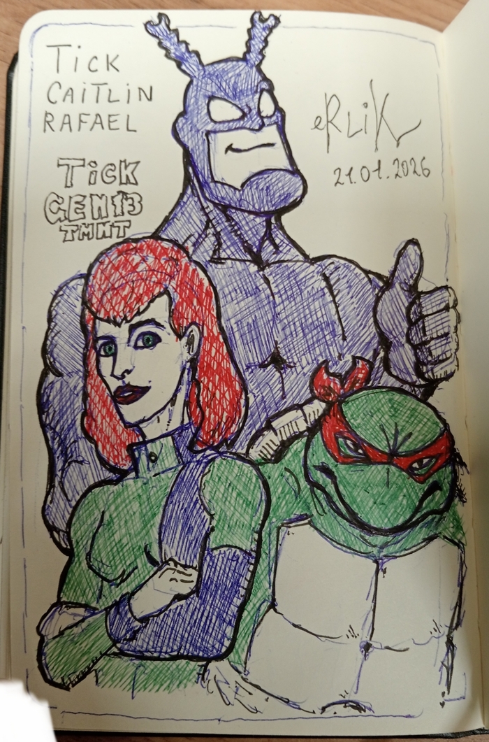 0 Columbus270 Очередной набросок: Тик-варвар и рыжая Кэйтлин 1 день назад [моё] Супергерои Набросок Скетч Рисунок ручкой Рисунок Ещё 0