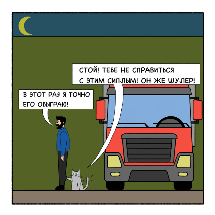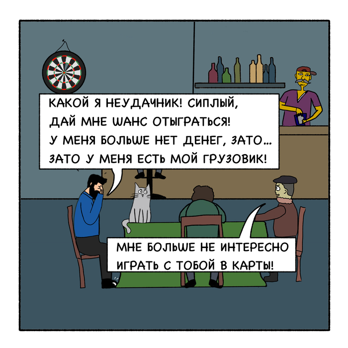 Оказывается, дальнобой любитель перекинуться в картишки! Кот Вулкан сразу понял, что до добра это не доведёт и начал действовать!