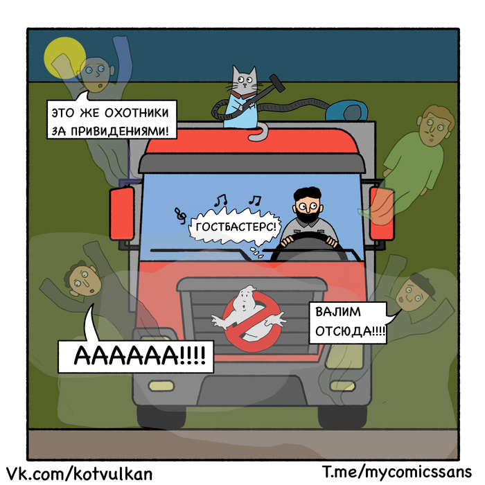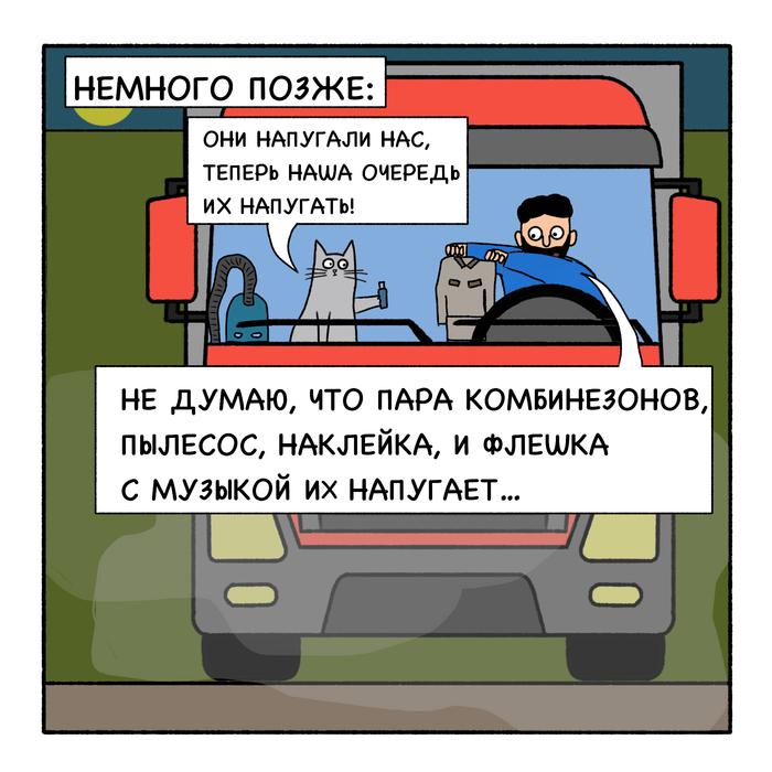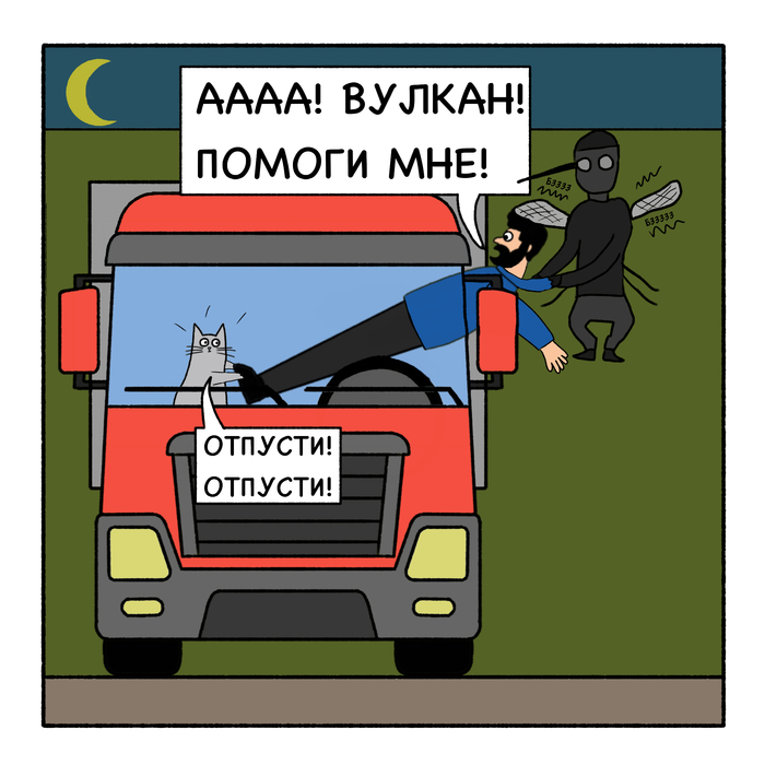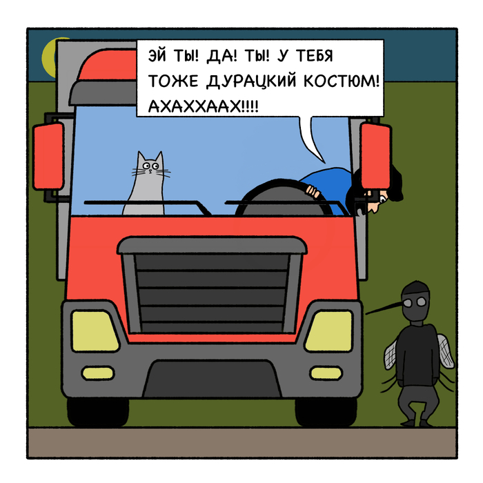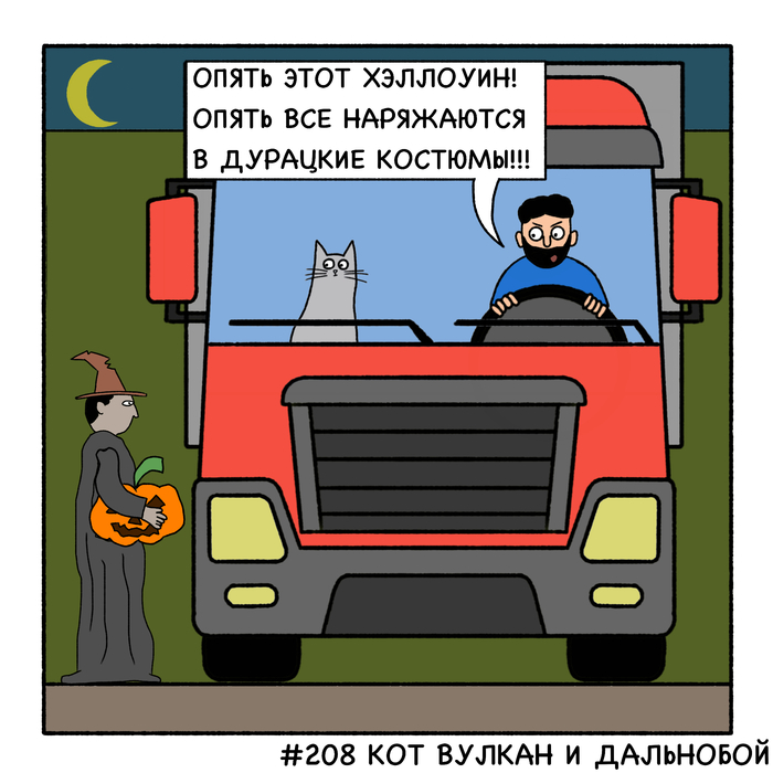 Как обычно, в конце октября, комикс кот Вулкан и дальнобой представляет специальный выпуск к Хэллоуину! Всем хорошей недельки, и аккуратнее на улице, если встретите человека-комара!🫣