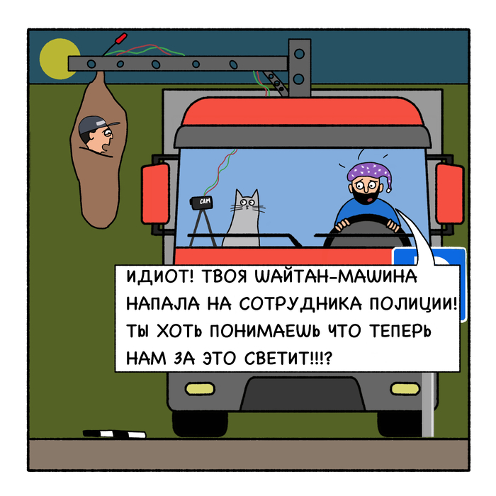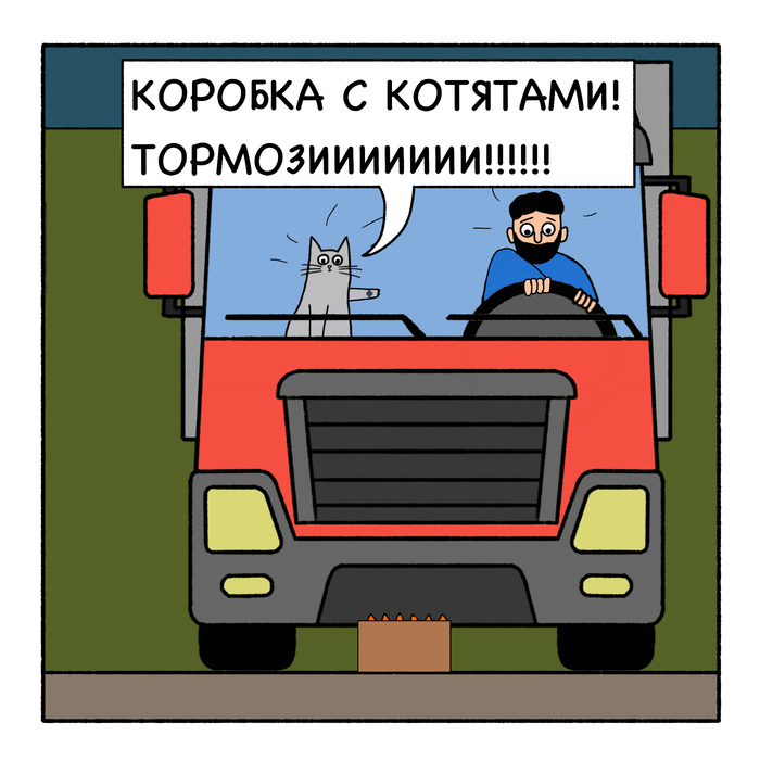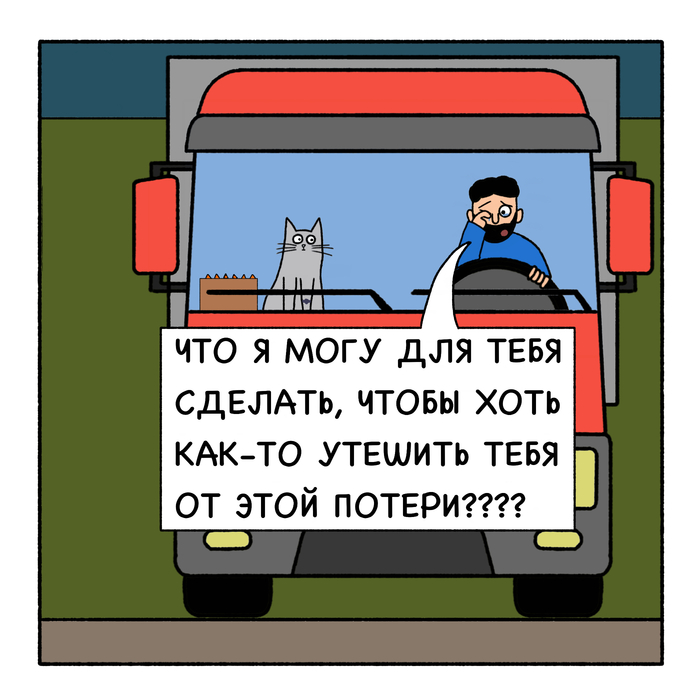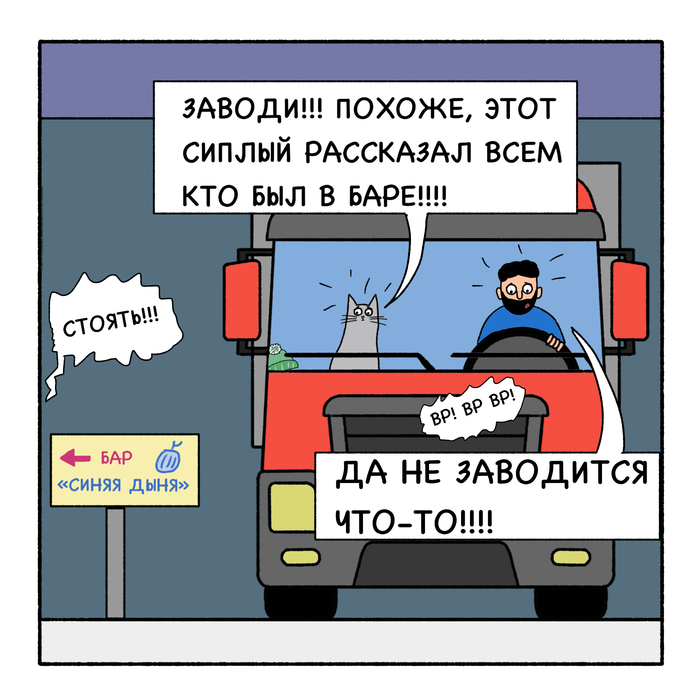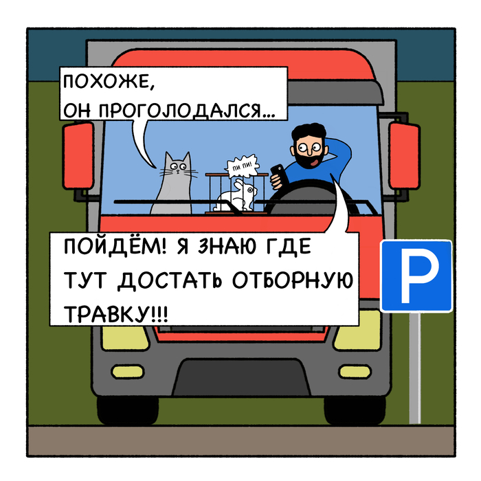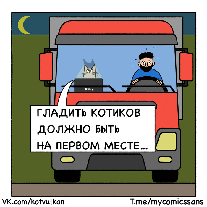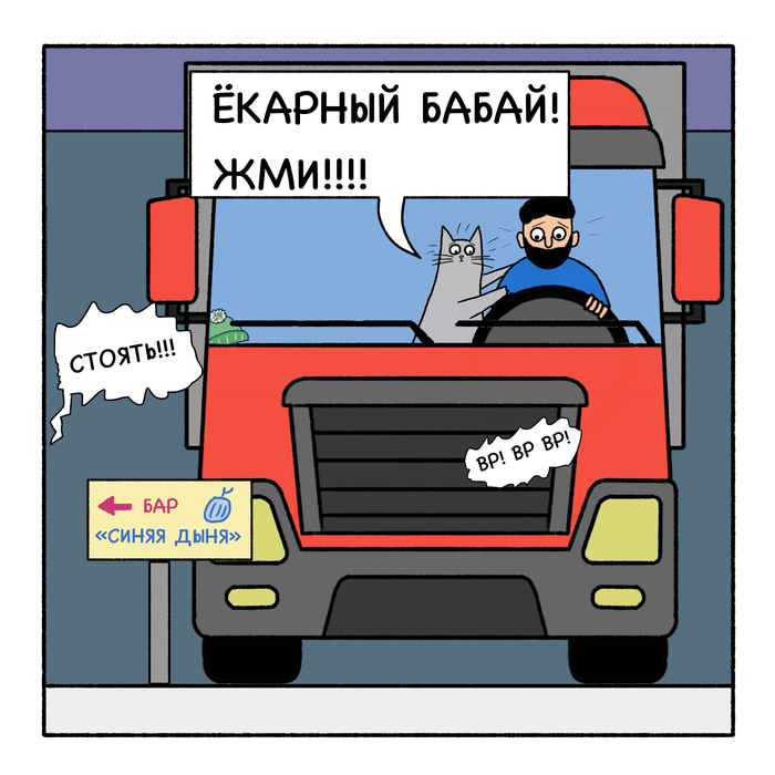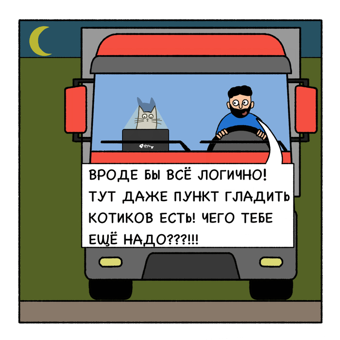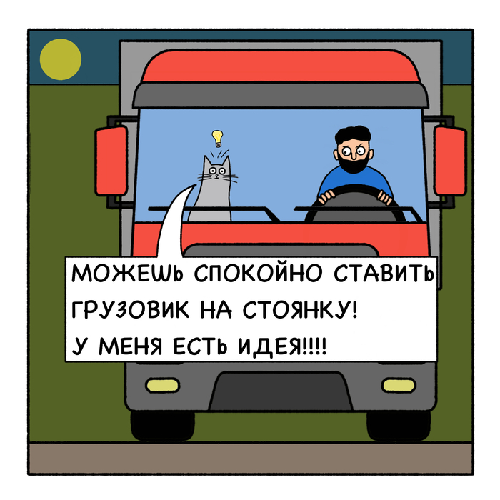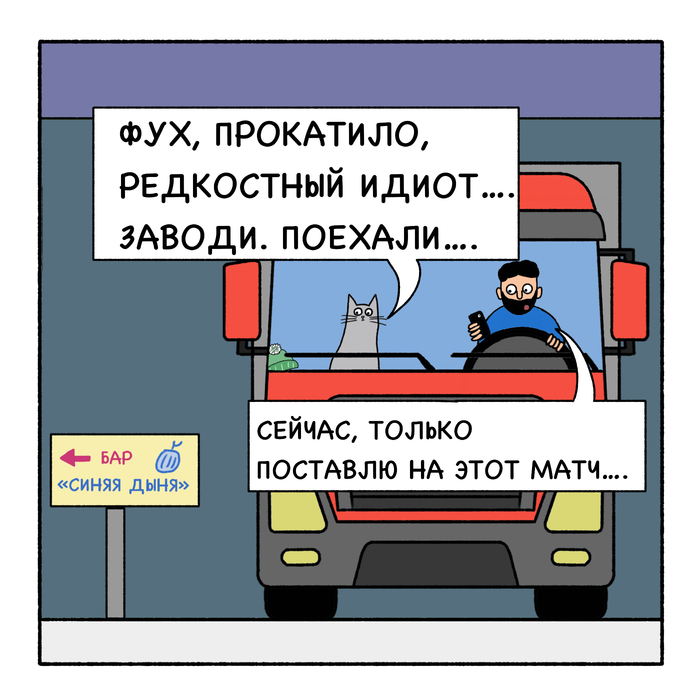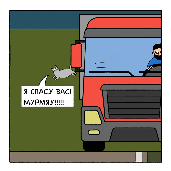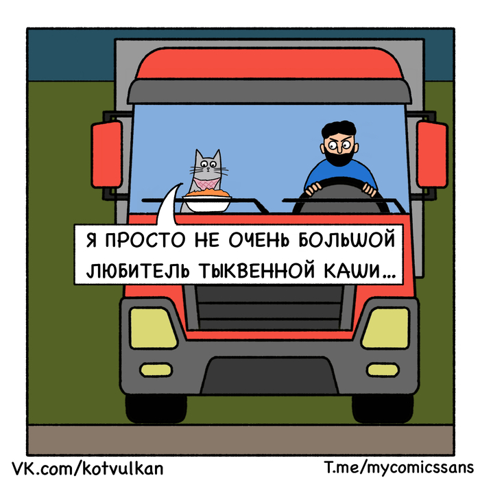 Кот Вулкан и дальнобой едут далеко-далеко. В дороге дальнобоя развлекает очень эрудированный и умный кот Вулкан.