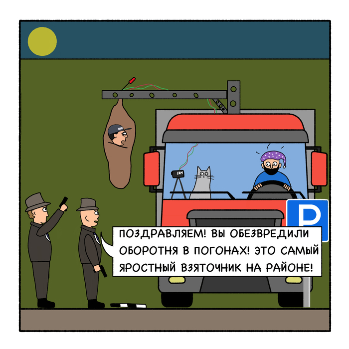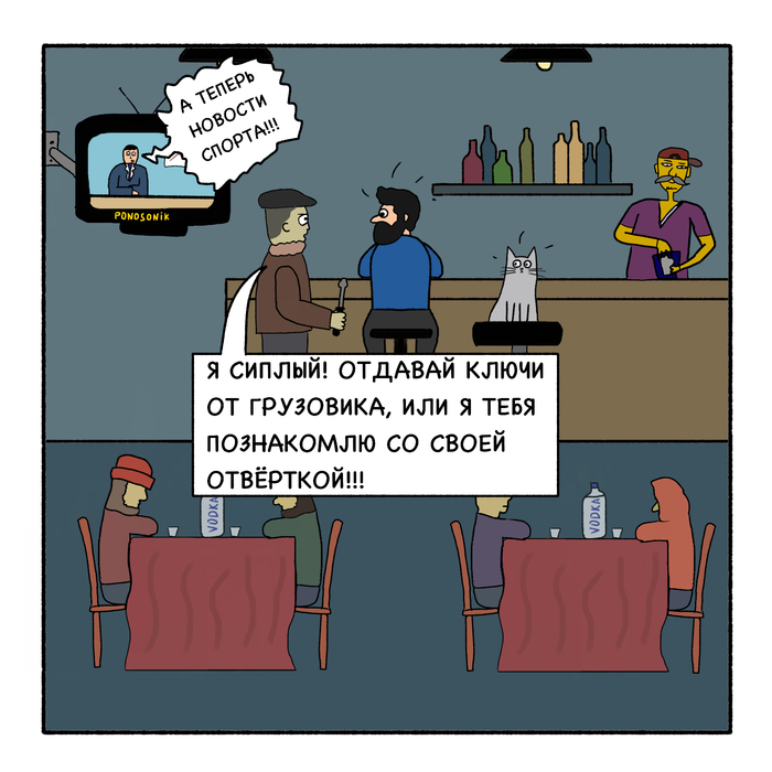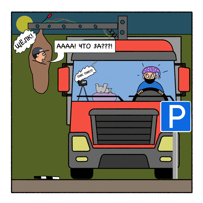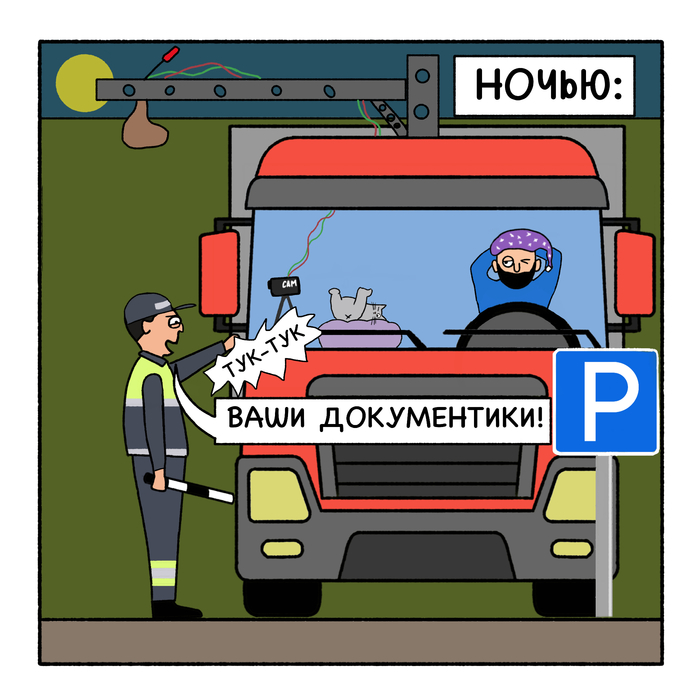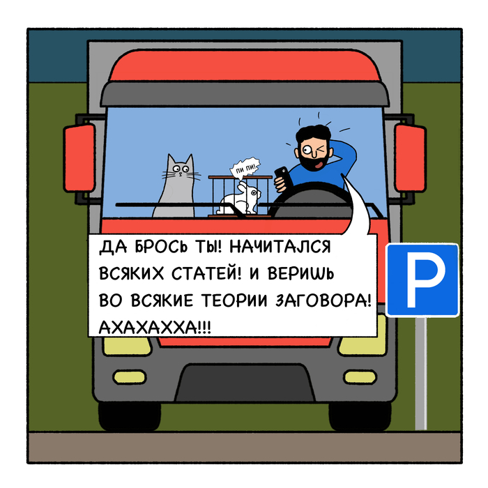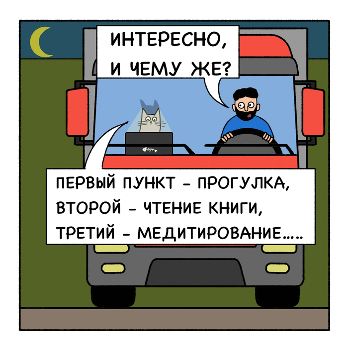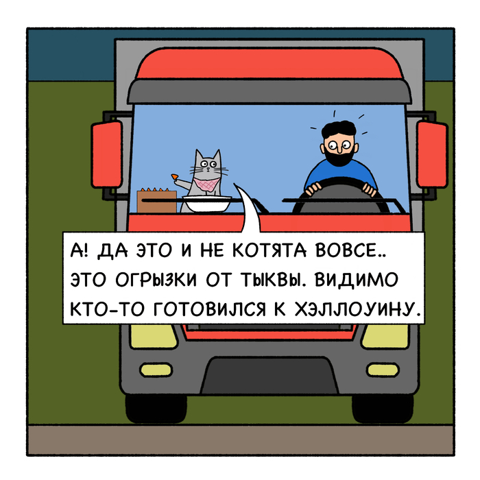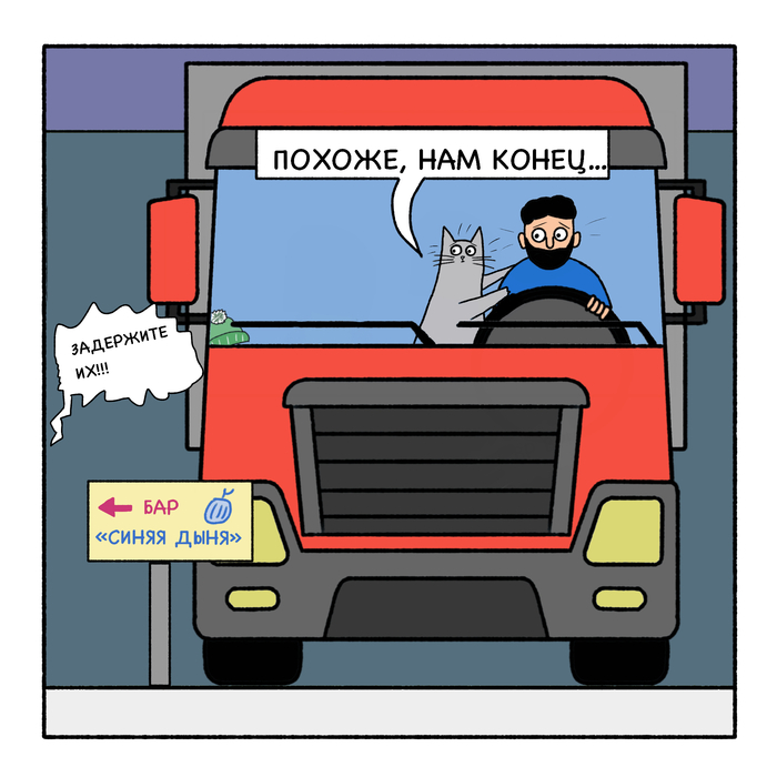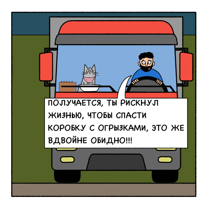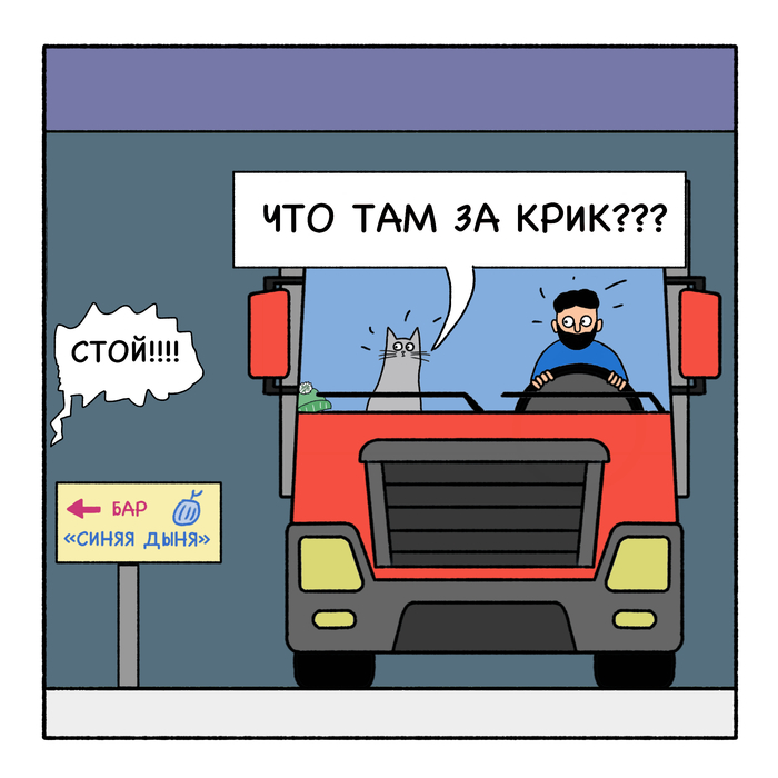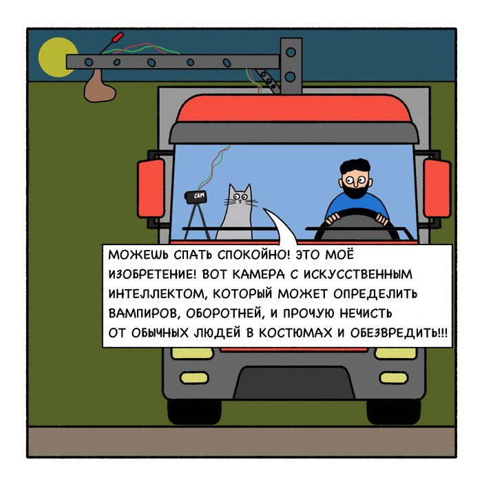 Кот Вулкан и дальнобой едут далеко-далеко. В дороге дальнобоя развлекает очень эрудированный и умный кот Вулкан.