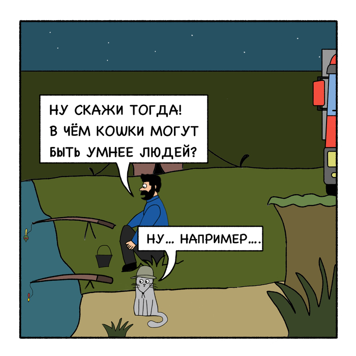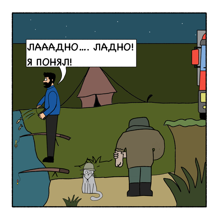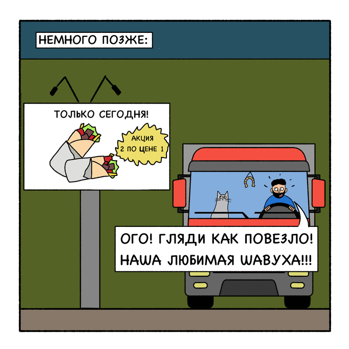 Друзья! Как я уже говорил, я немного устал, и комикс «Кот Вулкан и дальнобой» взял небольшую паузу на отдых. Но я обещаю, что скоро выйдут новые выпуски! А пока публикую «Байки в Синей дыне»!
