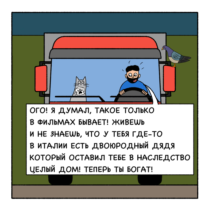 Друзья! Уже на протяжении более 2 лет я каждую неделю выпускаю новый выпуск комикса «Кот Вулкан и дальнобой». Когда-то этот момент должен был наступить, и он наступил! Я устал, выжат как лимон, стал безэмоциональной амёбой😁,мне необходим отдых. Поэтому комикс кот Вулкан и дальнобой берет паузу… сколько будет она продолжаться, пока не могу сказать. Но как минимум на этой и еще следующей неделе вы не увидите новый выпуск комикса! Давайте сделаем так, увидимся с вами в июле! За это время я постараюсь набраться новых сил, зарядиться положительными эмоциями, и продолжу радовать вас новыми выпусками! Аккаунт не будет совсем молчать, буду публиковать «байки в Синей дыне»! Надеюсь на ваше понимание! Для тех, кто желает поддержать, буду только рад: https://pay.cloudtips.ru/p/ecf120a4