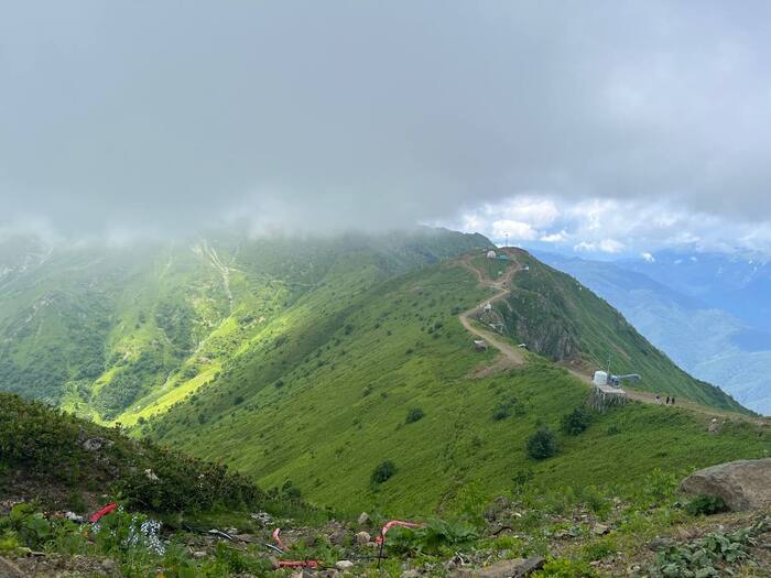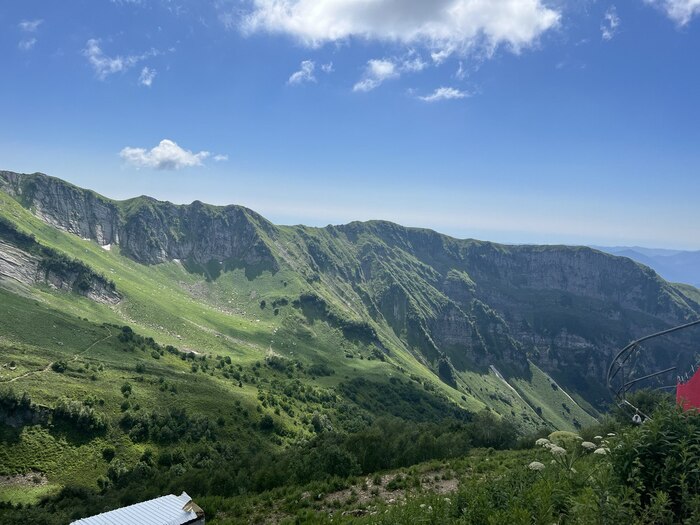 Последней на очереди стада Лаура, билеты после 17:00 стоят 500р за человека, по правде сказать делать там особенно нечего, можно прокатиться на обзорной канатке близ горного приюта "псехако". Мы решили доехать на канатке до горного приюта " пихтового" и пойти по маршруту до "псехако", простой и красивый маршрут.