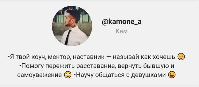 То есть kamone_a, которому Тимур помог вернуть девушку и восстановить балланс, тоже помогает другим людям возвращать девушек. Видимо, вдохновился деятельностью Тимура и тоже решил стать психологом.