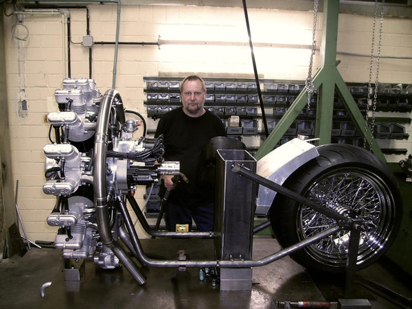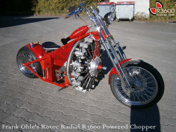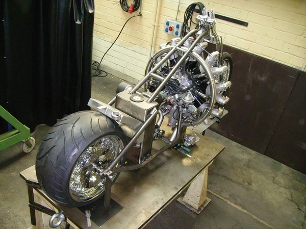 Представь себе мотоцикл с авиационным 9-цилиндровым двигателем. Как раз такой движок мастер и умудрился приспособить для своего детища, а именно, 150-сильный Rotec Radial R3600.