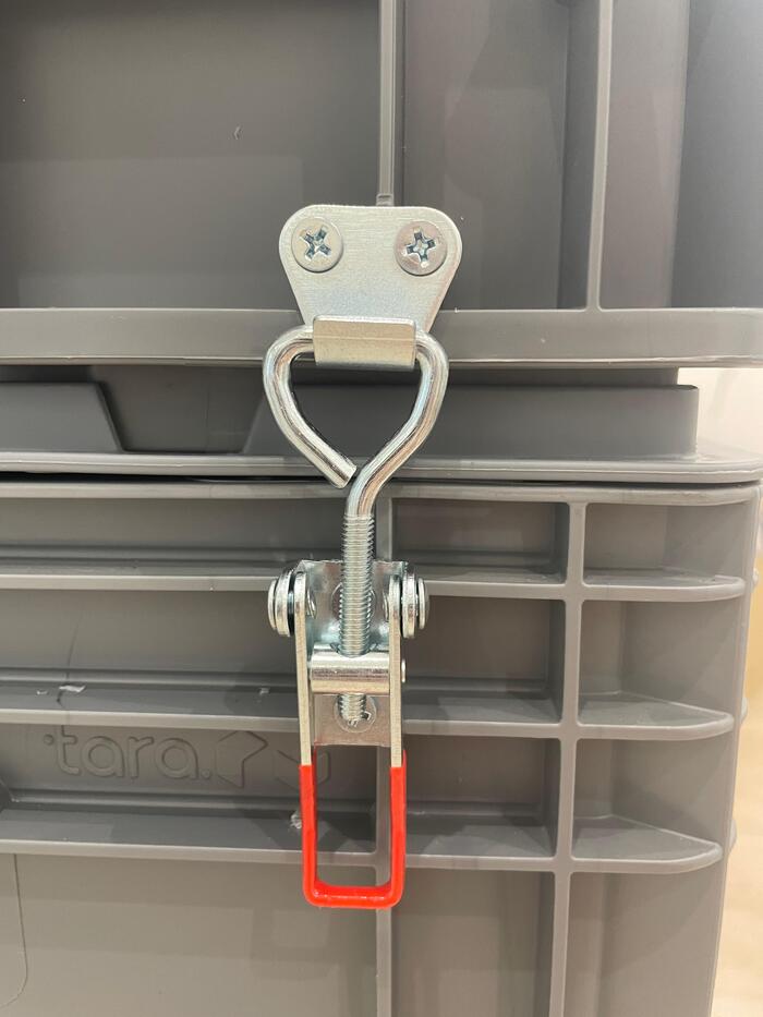 Для жесткого крепления ящиков между собой заказал регулируемые замки-защелки