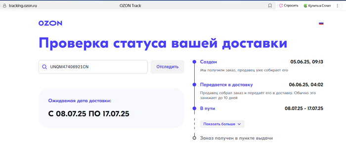 Я надеялся, что на части №1 негатив закончиться. Но нет, @Ozon продолжает дальше преподносить сюрпризы. Сегодня 08.07.2025 товара у меня нет и @Ozon ничего не делает для того чтобы доставить товар.