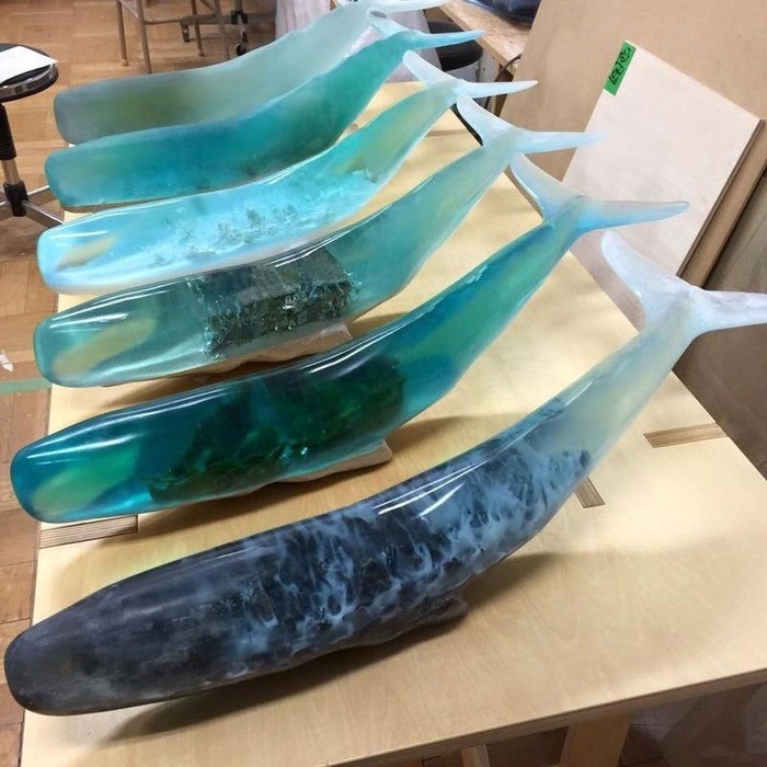 Японский художник Исана Ямада создал для своего дипломного проекта в Токийском университете искусств шесть прозрачных китов из смолы с миниатюрными сюжетами внутри. Проект называется «Сансара», каждый из шести китов символизирует один из миров, где, согласно буддийской космогонии, может родиться душа: мир богов, полубогов, людей, животных, голодных духов и мир-ад с демонами. В зависимости от кармических заслуг, душа попадает в высшие или низшие миры (мир людей считается средним), но вырваться из сансары и достичь нирваны — это лучше, чем родиться в мире богов.
