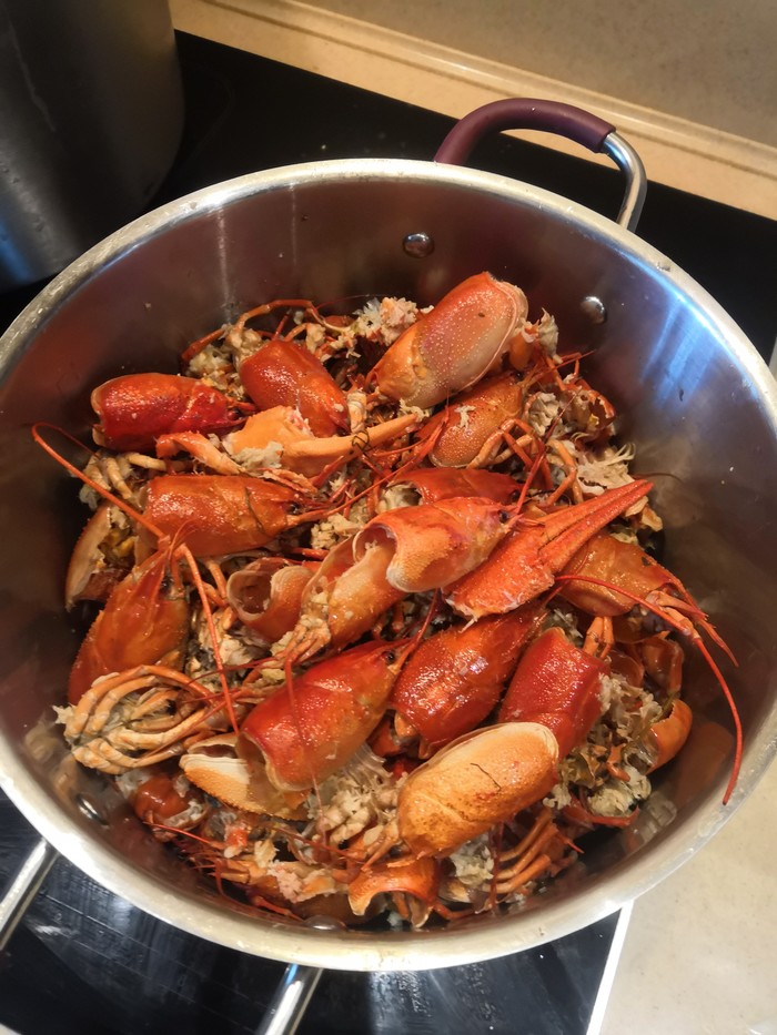 Пока доехал до дома, скумбрия уже отошла. Удаляем голову и потрошим рыбку. Рыбу солим тушкой без головы.