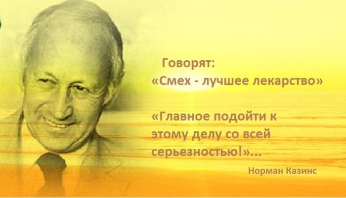 Подтверждение этого встречалось у многих философов и медиков древности. Он сообщил о желании попробовать нетрадиционную методику – смехотерапию своему лечащему врачу Хитцигу, который очень тепло отнёсся к пациенту. И поскольку терять было нечего, пациент начал терапию. Для этого он попросил перевезти себя в номер отеля (мужчина почти потерял способность двигаться) и нанял сиделку. В комнате установили кинопроектор, и Норман приступил к просмотру комедий и комедийных шоу.