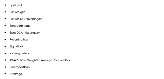 Pionex – это своего рода ИИ биржа, которая берёт ликвидность с крупных бирж для выполнения ордеров. Пользователи этой биржи получают доступ к автоматическим стратегиям торговли прямо внутри платформы. На этой платформе низкие комиссии, всего 0,05% за сделку.