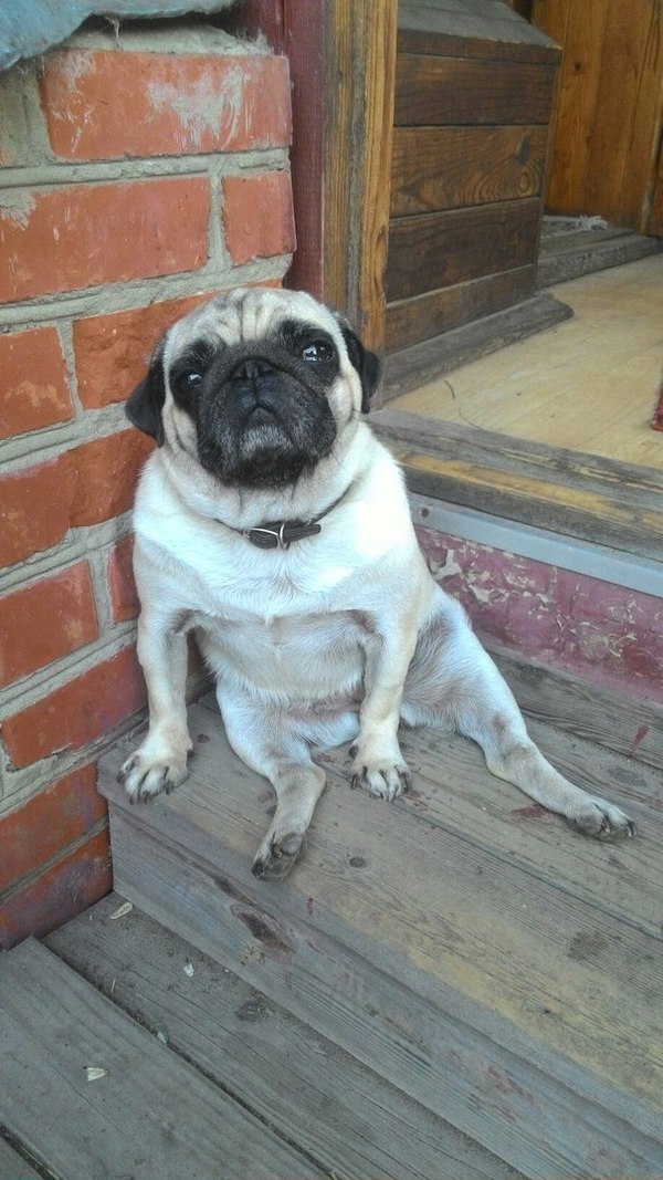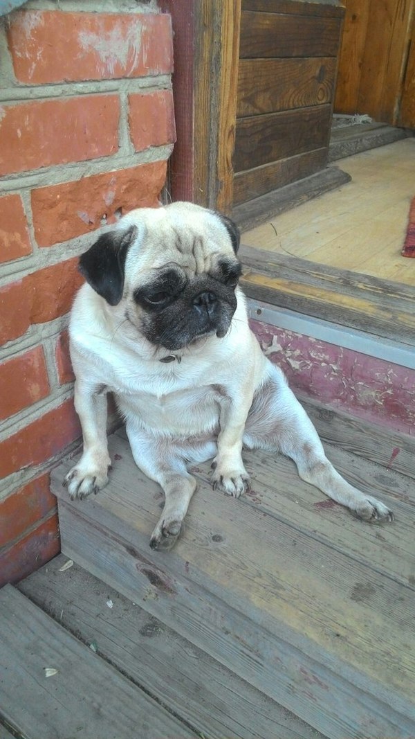 19 CucbKaTpaKToPucT Приуныла 9 лет назад Постоянно так сидит. А вообще она весёлая. Показать полностью 2 [моё] Мопс Тщетность бытия Уныние Длиннопост