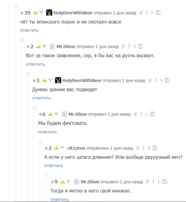 195 D0lph1 Скриншоты комментов Дуэль 8 лет назад #comment_83696571 Показать полностью 2 Комментарии Пикабу Комментарии на Пикабу