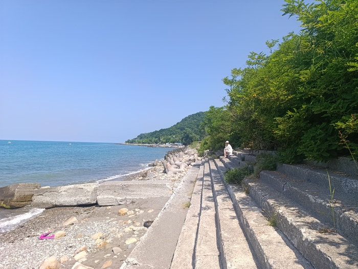 Прошелся к обычному пляжу не понравилось, много народу, хотя чистенько, но узенько. Прошелся в другую сторону от своей локации, нашел дикий пляж и голым позагорал минут по 15 с каждой стороны, а то можно обгореть. Дикий потому что там никого не было)) На Черноморском побережье есть такое понятие как столовые, офигенные советские столовые, в целом на 350 рубле можно взять котлету, гарнир с подливкой, салат и компот, поэтому о еде я не парился, прошелся по округе, мост над главной улице с лифтом. Цивилизованный и чистый поселок.