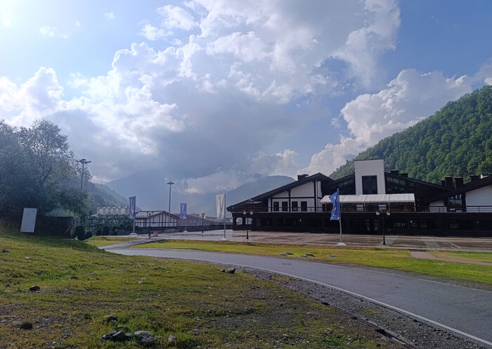 Встал рано утром, пошел гулять по набережным Роза Хутор. Спортсменов огромное количество, целые отряды мелких гимнасток лет 8-10 занимаются прям на набережной, приходилось обходить, но в целом утро на набережной самое спокойное и тихое. Днем пошел на тропу здоровья, это 2.4 км организованно и проложенной тропы по горам, это был очень интересный опыт, то круто ступеньки вверх, то вниз и ни одно ровного участка, в аннотации говорится что тропа занимает 1.40, но я прошел за 1.10, практически не отдыхал - очень советую попробовать, позитивный опыт. Там три hreuf? можно выбрать по своему здоровью.