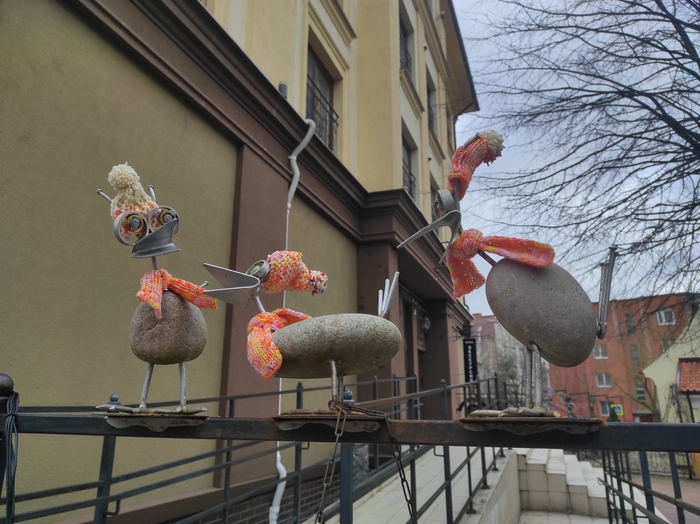 Гуляли мы как то с семьей по Зеленоградску и увидели довольно оригинальных птичек. По просьбам жены и дочки решил я их сплагиатить.