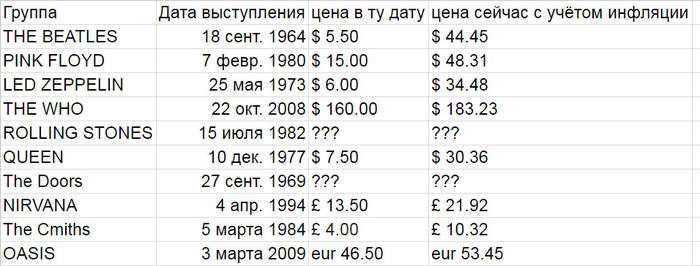 P.S. Cразу набегут все знатоки, мол вот билеты в разные зоны, вот билеты в разных городах, ну да и ладно на вас)) THE WHO вообще барыги! а на QUEEN 77 года я бы и в разы дороже за билет хотел попасть.