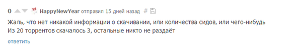 Появилась базовая информация о количестве раздающих, для торрентов существующих на некоторых самых публичных трекерах. Я напоминаю, что в поисковике большое количество сугубо уникальных найденных торрентов.