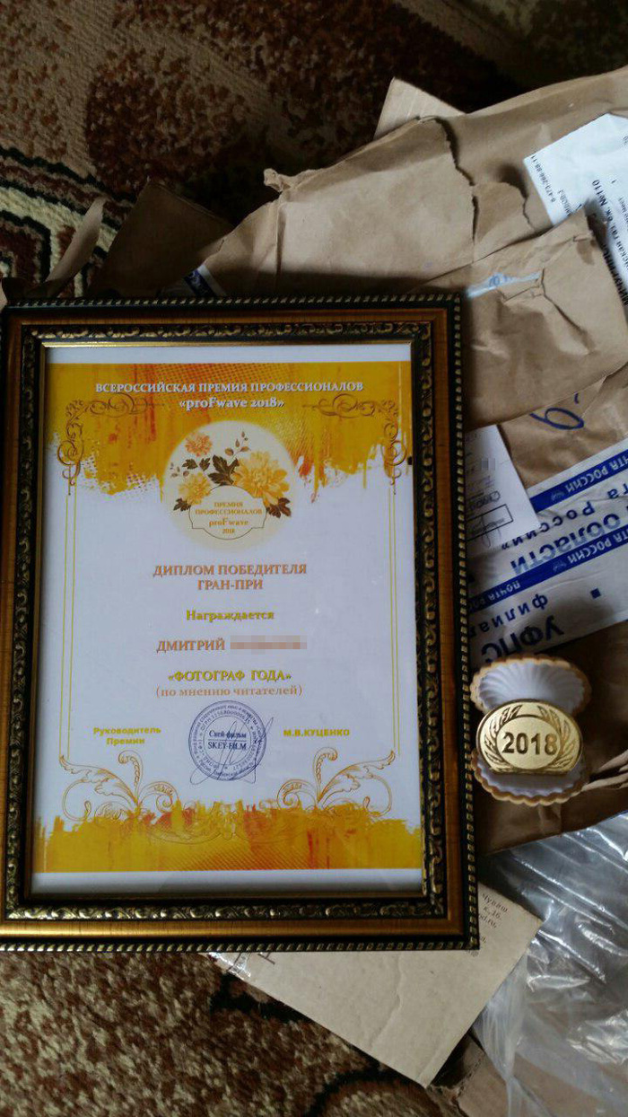 Ну и наконец развязка. У меня есть творческий псевдоним под которым я работаю уже очень много лет. По сути это практически моя вторая фамилия. И свою настоящую фамилию я использую только для связи с государством. В конкурсе я также участвовал под псевдонимом Джазов. Но диплом победителя приехал с моей настоящей фамилией, взяла видимо с информации о получателе посылки.