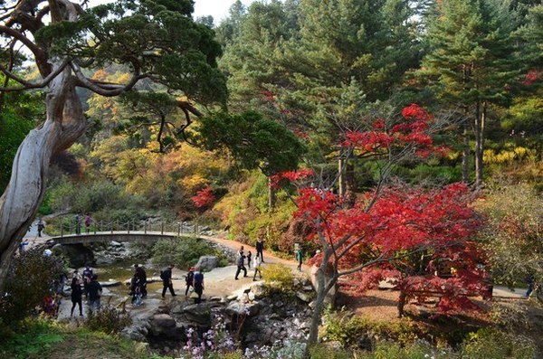 Тысячи видов цветов, сосны, незабываемый аромат, витающий в воздухе, привлекают сюда корейские семьи и влюбленные парочки.