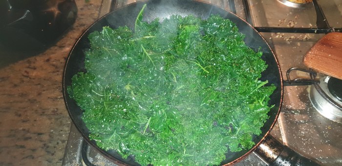 В это время можно заняться каким-нибудь гарниром, в моем случае консервированные бобы, макарошки и Kale (извиняюсь за грязную плиты, я - ленивая задница).