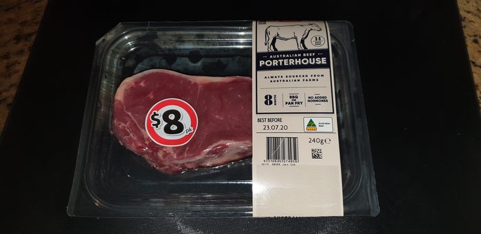 И так, для начала нам нужно мясо. В моем ближайшем супермаркете из стейкового мяса есть только Porterhouse, который кошерен, но в России встречается редко. Но для рецепта подойдет любой другой стейковый отрез (типа Sirloin и прочих).