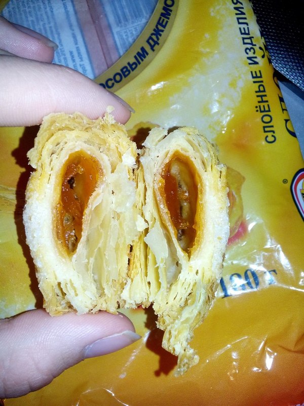 DROCHILA Слойки "с джемом". 9 лет назад Это не реклама, а антиреклама, поэтому название фирмы не закрашиваю...Настоятельно не рекомендую покупать эти слойки.Джем только по бокам. Сухие, со вкусом старого хлеба... Показать полностью 4 [моё] Слойка Хитрость Джем Развод Длиннопост