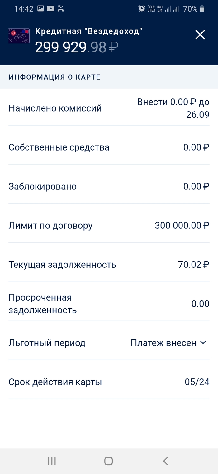 20,09,2020 я решил закрыть карту как показывает платеж в приложении (остаток долга до 26,09,2020 внести 1414,74) я уточнял у оператора сумму долга, именно такую сумму подтвердил оператор. я ее внес. но на следующий день 21,09,2020 я увидел снова долг, только в этот раз я банку должен 70 рублей. уточнил в приложении почему? ответили что вы должны по основному долгу 70 рублей, а вот проценты на них еще 280 рублей. и это по состоянию на 20,09,2020 а на 21,09,2020 вы должны уже 440 рублей еще оплатить, из них все так же 70 рублей основной долг. что составляет 528% от суммы основного долга, который банк сам пририсовал. за день на 70 рублей накапало 90 рублей процентов. в банке отказались комментировать этот вопрос, тк сами ничего не поняли. создали запрос специалистам. очередная претензия в данный момент находится в рассмотрении. я внес ещё 440 рублей, к тем 200 и 1414 (в сумме 2055)написал заявление на закрытие карты.