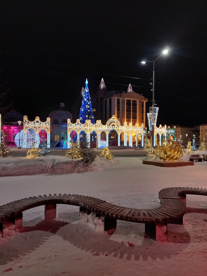 Гулял по красивому зимнему ночному Салехарду.Хотя ,что греха таить-в районе комбината или гидропорта не особо он и красивый... Деревянные бараки,максимальный минимализм).