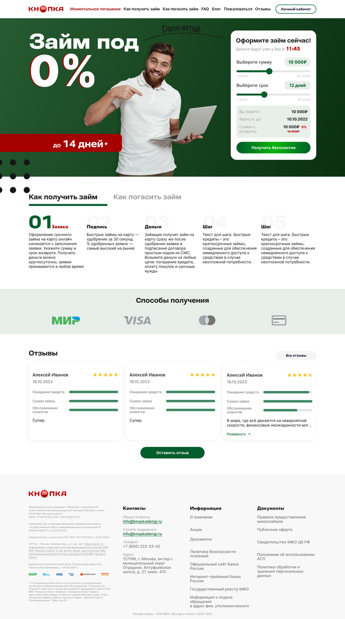 Минимум страниц, максимум смысла. Обычно сайт-визитка состоит из 1–5 экранов: краткое описание, услуги, контакты.