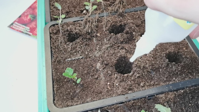 Поливать удобно из бутылочки от перекиси водорода. Во время пересадки рассада может немного вянуть, но как только накроем "тепличкой" листья снова придут в нормальное состояние.