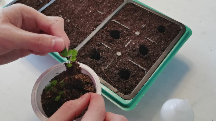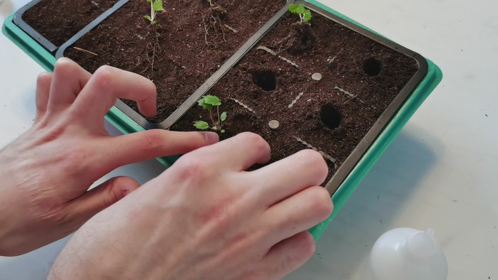 С момента посева земляники прошел 1 месяц и неделя. Пришла пора пересаживать по кассетам.