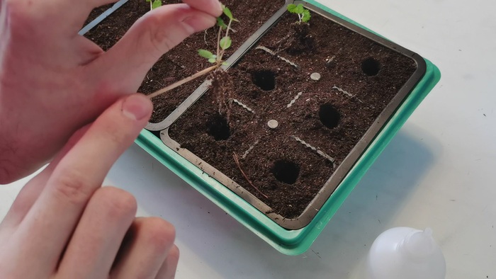 Аккуратно при помощи зубочистки (надо было попробовать вилкой), достаем растения.