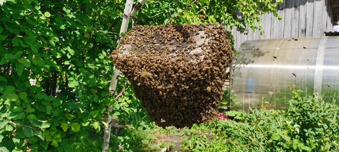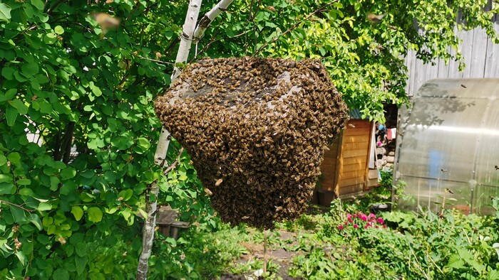 Пчелы начали роиться с разницей в две-три минуты. Новосибирская область.