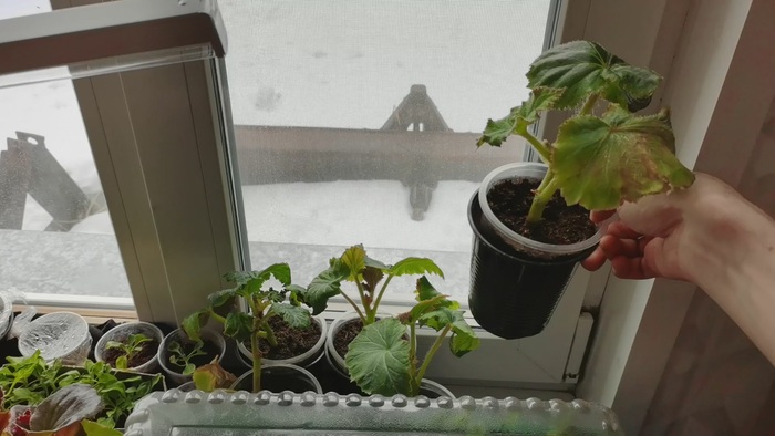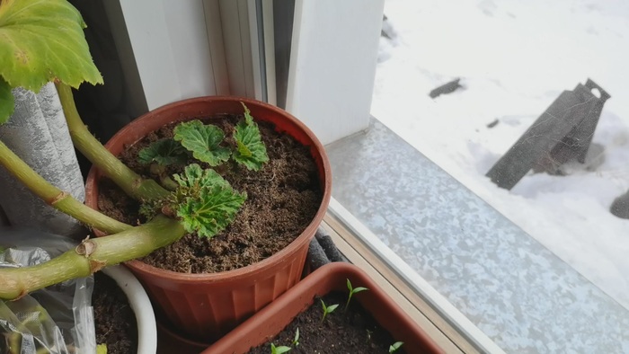 Отрастает и зимующие бегонии из серии Америгибрид. С них брались черенки.