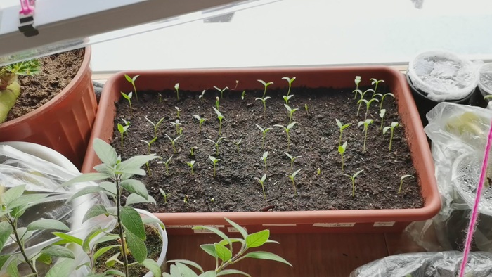 Сеяли 3 января три сорта: Кокетка 11 семян, Сладкоежка 10 семян и Иришку, примерно 55 семян.