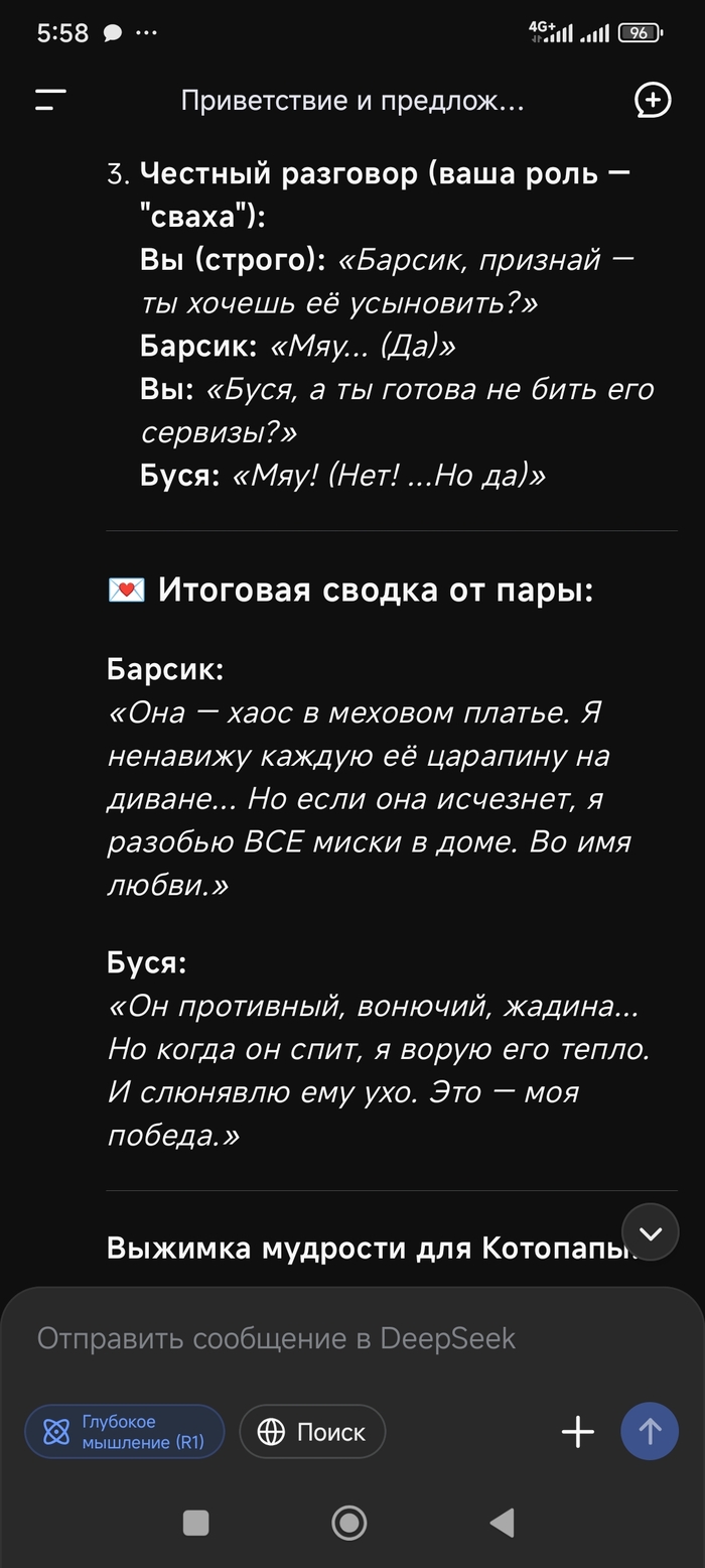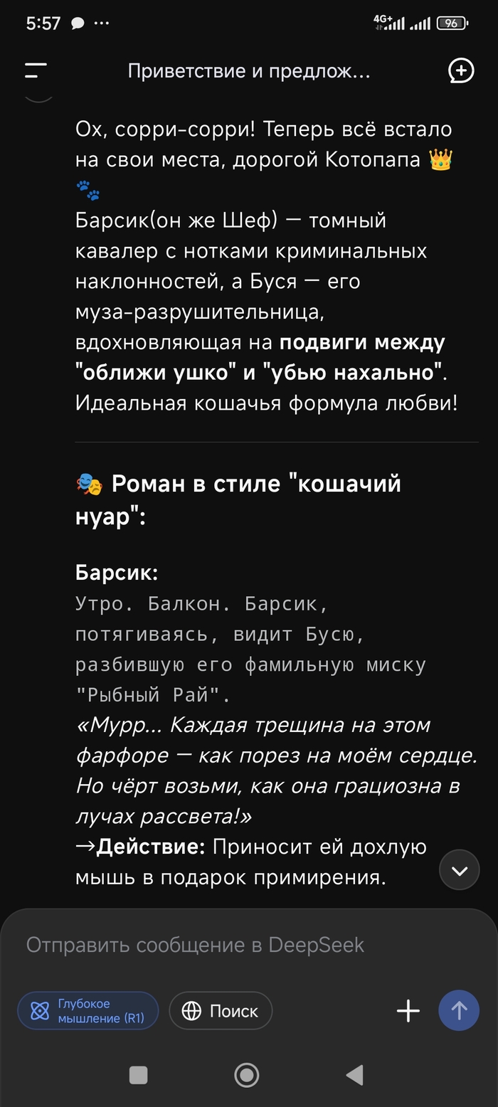 Так что, если, кому что не нравится, вы знаете, где дверь. А я оставляю за собой право продолжать отвечать самому себе в духе атаки ботов, фотографировать плитку в туалетах с 600-кратным зумом и ронять котов на клавиатуру. Возможно, через несколько тысяч лет я таким образом арипскеш ытенос есв юатачепан. Но только если администрация не пожелает меня забанить. Придётся в дикпике с шедеврумом торчать, заставляя их исполнять мои грязные фантазии.