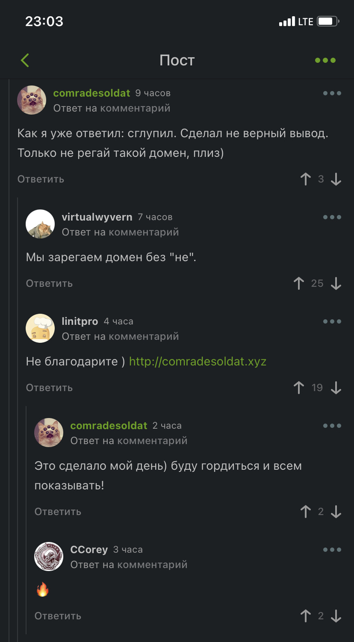 7 Dancon 4 года назад Комрад не лох) #comment_187344244 Показать полностью 2 Скриншот Сайт Комментарии на Пикабу Длиннопост Ещё 0