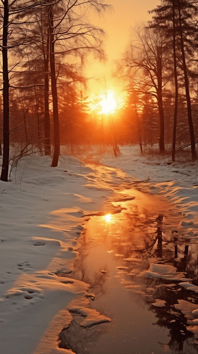 Длительность: в зимние месяцы солнце опускается к горизонту по низкой траектории, из‑за чего закат может казаться более растянутым по времени.
