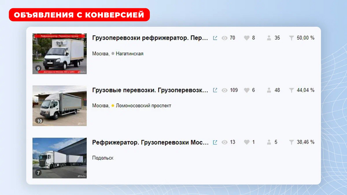 ✅ Публикация объявлений: 6. Больше размещать смысла не было, т.к. в декабре спрос высокий, загруженность работой 100%, машин не хватает.
