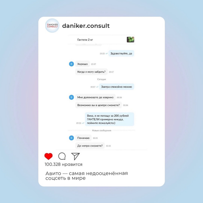У клиента есть сообщество ВКонтакте, аккаунт в инсте и профиль на Авито.